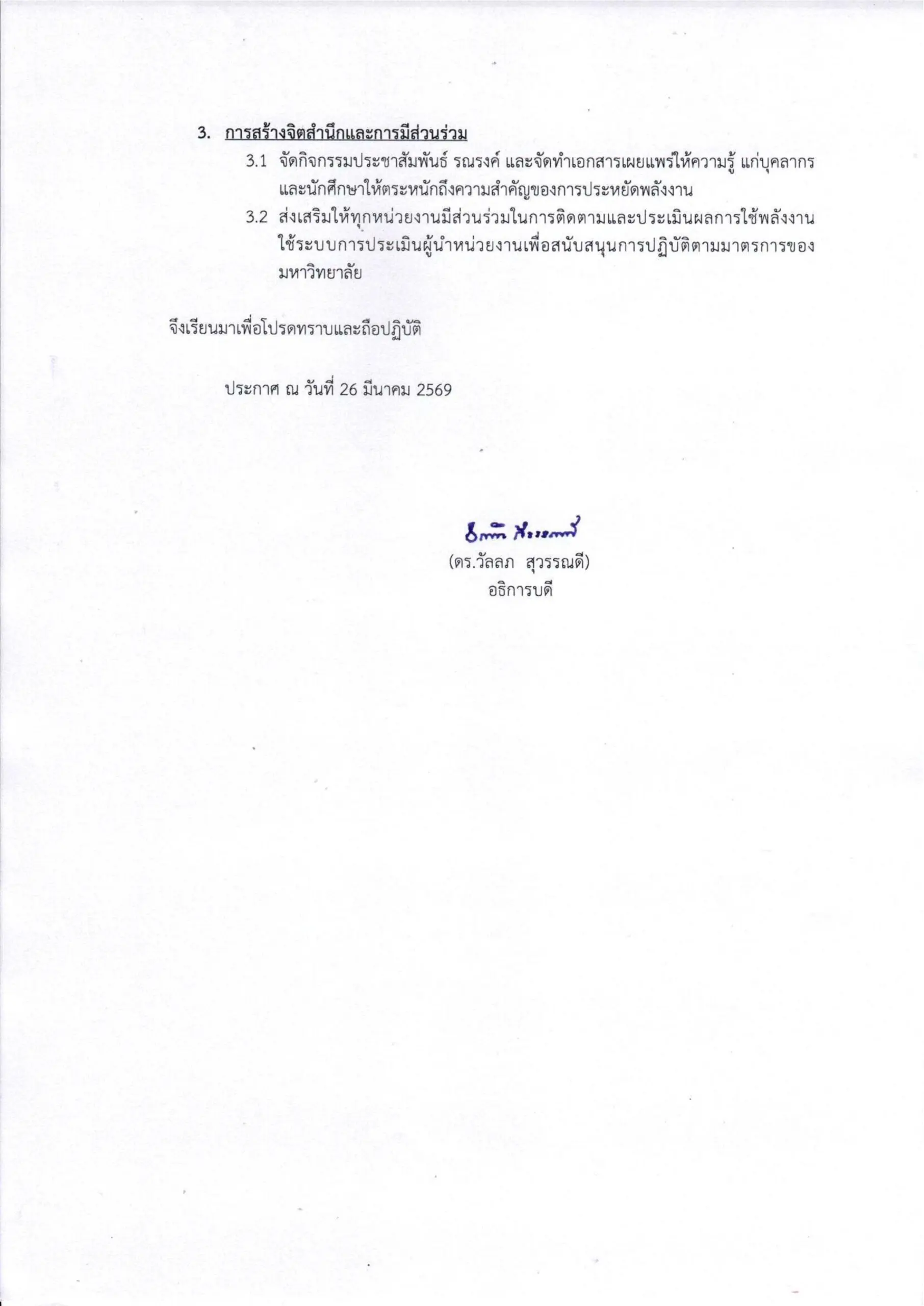 ประกาศที่ 6/2569 มาตรการในการประหยัดพลังงานเพื่อลดผลกระทบจากวิกฤตราคาน้ำมันโลก