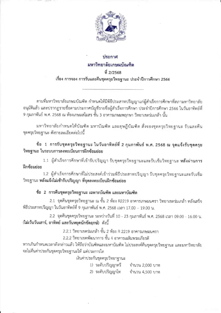 การจอง การรับและคืนชุดครุยวิทยฐานะ ประจำปีการศึกษา 2566