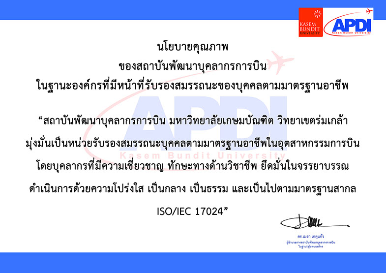 – มาตรฐานอาชีพและคุณวุฒิวิชาชีพ สาขาบริการภาคพื้น และสนับสนุนการบินภาคพื้นในอาคาร