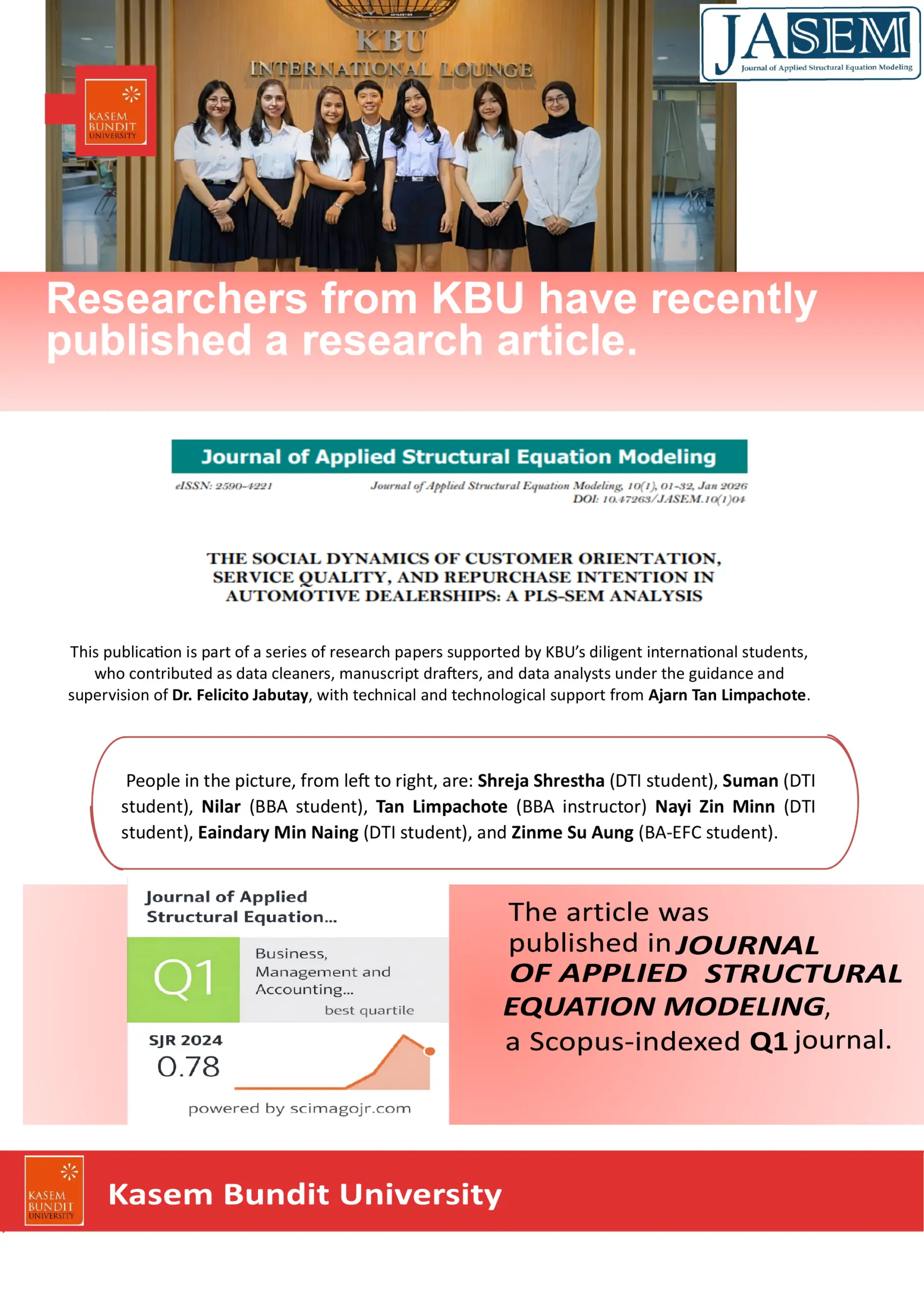 KBU ปังไม่หยุด งานวิจัยตีพิมพ์วารสาร Q1 ระดับโลก เดินหน้าสร้างองค์ความรู้สู่สากล