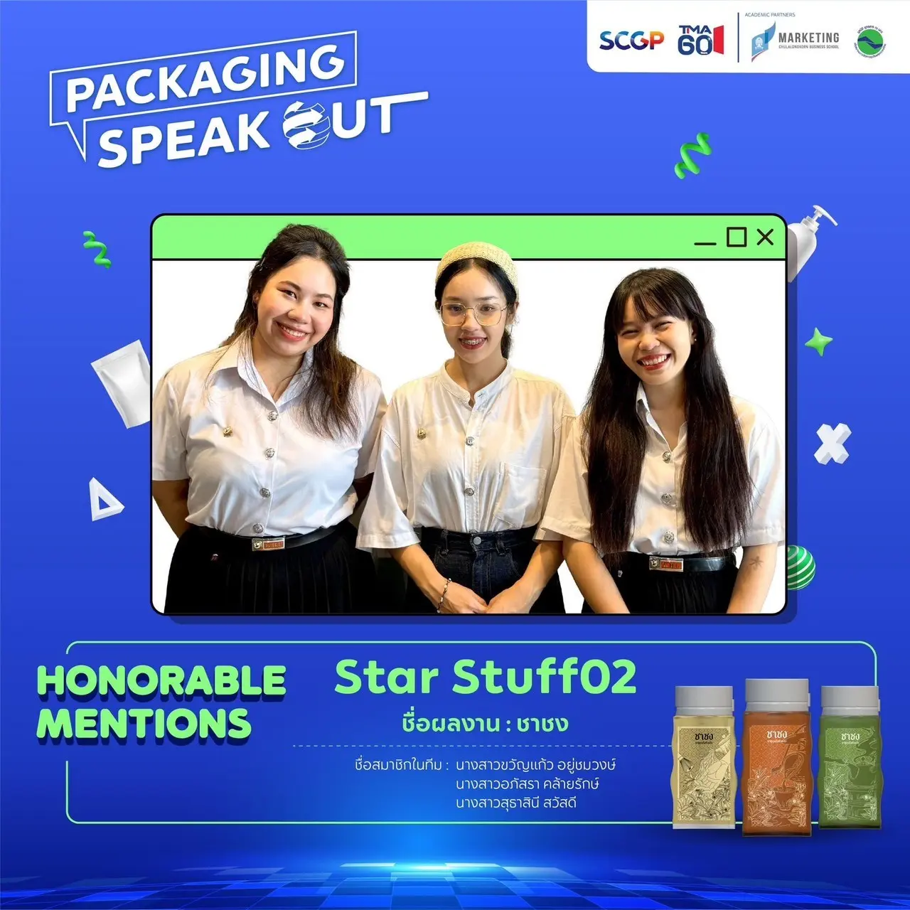 ขอแสดงความยินดีกับ นักศึกษาชั้นปีที่ 4 จากสาขาวิชาออกแบบนิเทศศิลป์ คณะสถาปัตยกรรมศาสตร์ นำผลงานเข้าประกวดในโครงการ SCGP Packaging Speak Out 2024