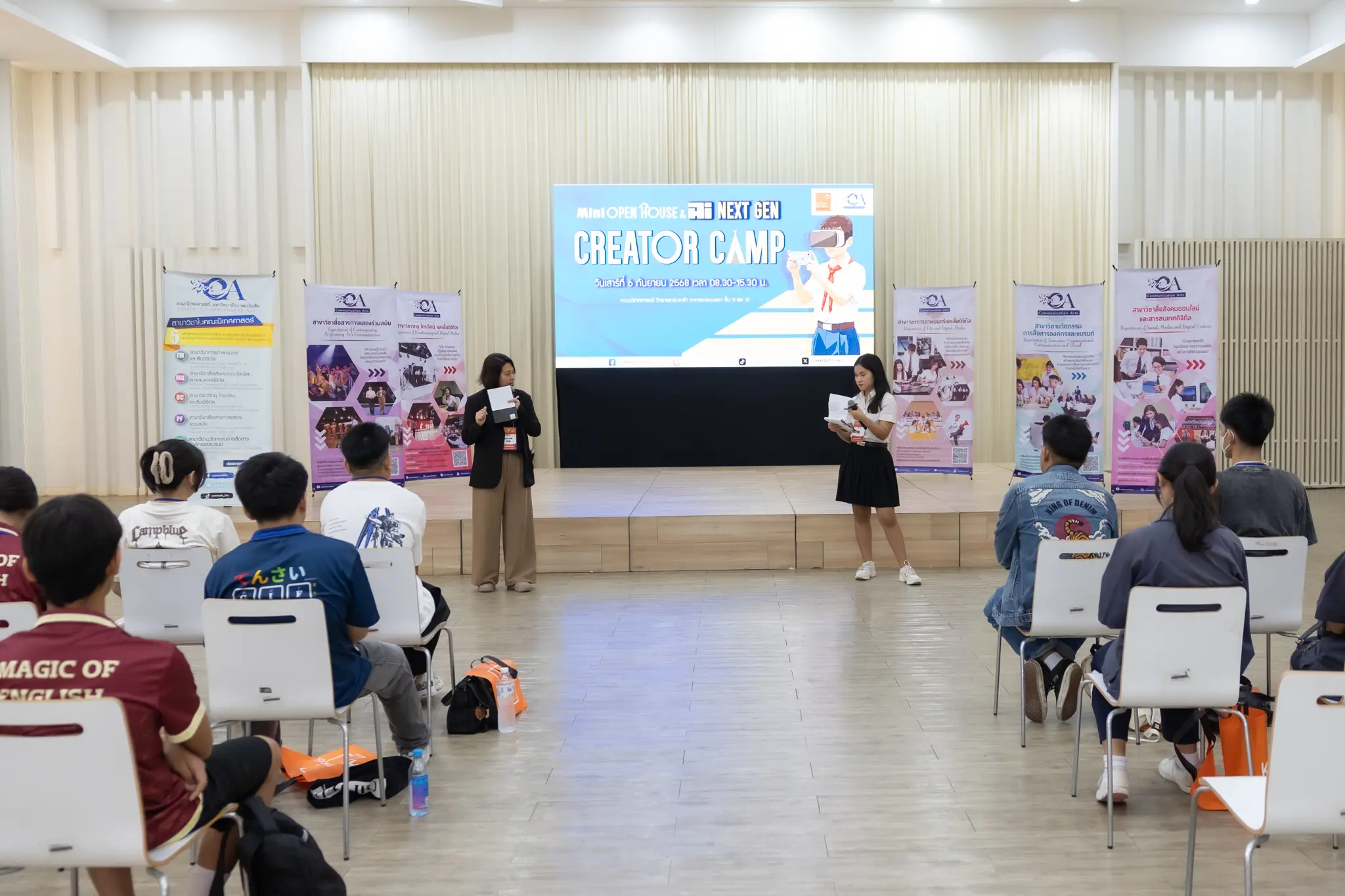 ภายในงานน้อง ๆ ได้เข้าเยี่ยมชมห้องเรียน ห้องปฏิบัติการ และเครื่องมือทันสมัย พร้อมร่วมกิจกรรมสนุกๆ กับรุ่นพี่จากสาขาวิชาต่าง ๆ ที่มาแบ่งปันแรงบันดาลใจเกี่ยวกับการเรียนในหลักสูตร รวมถึงกิจกรรมเชิงสร้างสรรค์ภายใต้แนวคิด “AI Next Gen Creator” ที่เน้นการเรียนรู้แบบลงมือปฏิบัติ (hands-on) ผสมผสานความรู้จากผู้เชี่ยวชาญด้านเทคโนโลยี AI ในการผลิต Vlog และการออกแบบคอนเทนต์ดิจิทัล