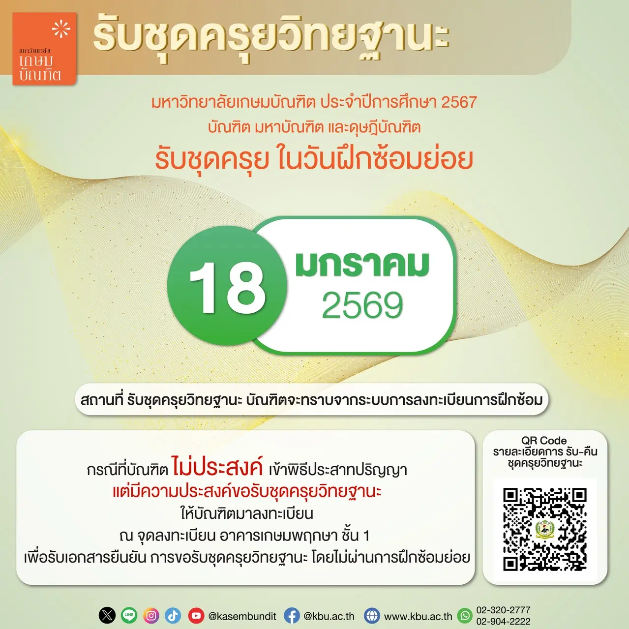 ประกาศที่ 57/2568 เรื่องการจองการรับและคืนครุยวิทยฐานะประจำปีการศึกษา 2567