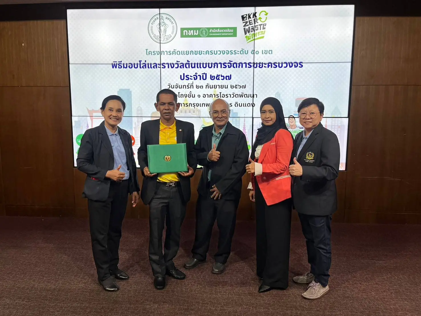 ทีมวิจัยชุมชน คณะบริหารธุรกิจ คณะบริหารธุรกิจ (BBA.) คณะสถาปัตยกรรมศาสตร์ ร่วมกับทีมสำนักวิจัย มหาวิทยาลัยเกษมบัณฑิต ร่วมพัฒนา 3 ชุมชน และ 1 โรงเรียน เขตหนองจอก ในการคัดแยกขยะ ตั้งแต่ต้นทางแหล่งกำเนิดให้มีประสิทธิภาพและสร้างต้นแบบในการจัดการขยะครบวงจรในพื้นที่กรุงเทพมหานคร จึงทำให้รับรางวัล จากการประกวดต้นแบบการจัดการขยะครบวงจร ประจำปี 2567 คือ ชุมชนเลียบคลอง 13 และโรงเรียนสุเหร่าหะยีมินา รับรางวัลรองชนะเลิศ และ ชุมชนลำสลิดทองพัฒนา และชุมชนผดุงพันธ์พัฒนา รับรางวัลชมเชย เพื่อรณรงค์ส่งเสริมความร่วมมือในการคัดแยกขยะตั้งแต่ต้นทางแหล่งกำเนิดให้มีประสิทธิภาพ เพิ่มมูลค่าของเหลือเป็นวัตถุดิบการผลิตสินค้าใหม่สำหรับวัสดุรีไซเคิล หรือเป็นสารบำรุงดินสำหรับเศษอาหาร ซึ่งเป็นไปตามนโยบายส่งขยะคืนสู่ระบบ นโยบายเขตต้นแบบจัดการขยะครบวงจรแยกขยะเศษอาหารและคัดแยกขยะแบบมุ่งเป้า โดยมุ่งเน้นการคัดแยกขยะและนำเข้าสู่ระบบหมุนเวียนใช้ประโยชน์ จัดโดย กรุงเทพมหานคร ณ ห้องโถง ชั้น 1 อาคารไอราวัตพัฒนา ศาลาว่าการกรุงเทพมหานคร ดินแดง เมื่อวันที่ 23 กันยายน 2567