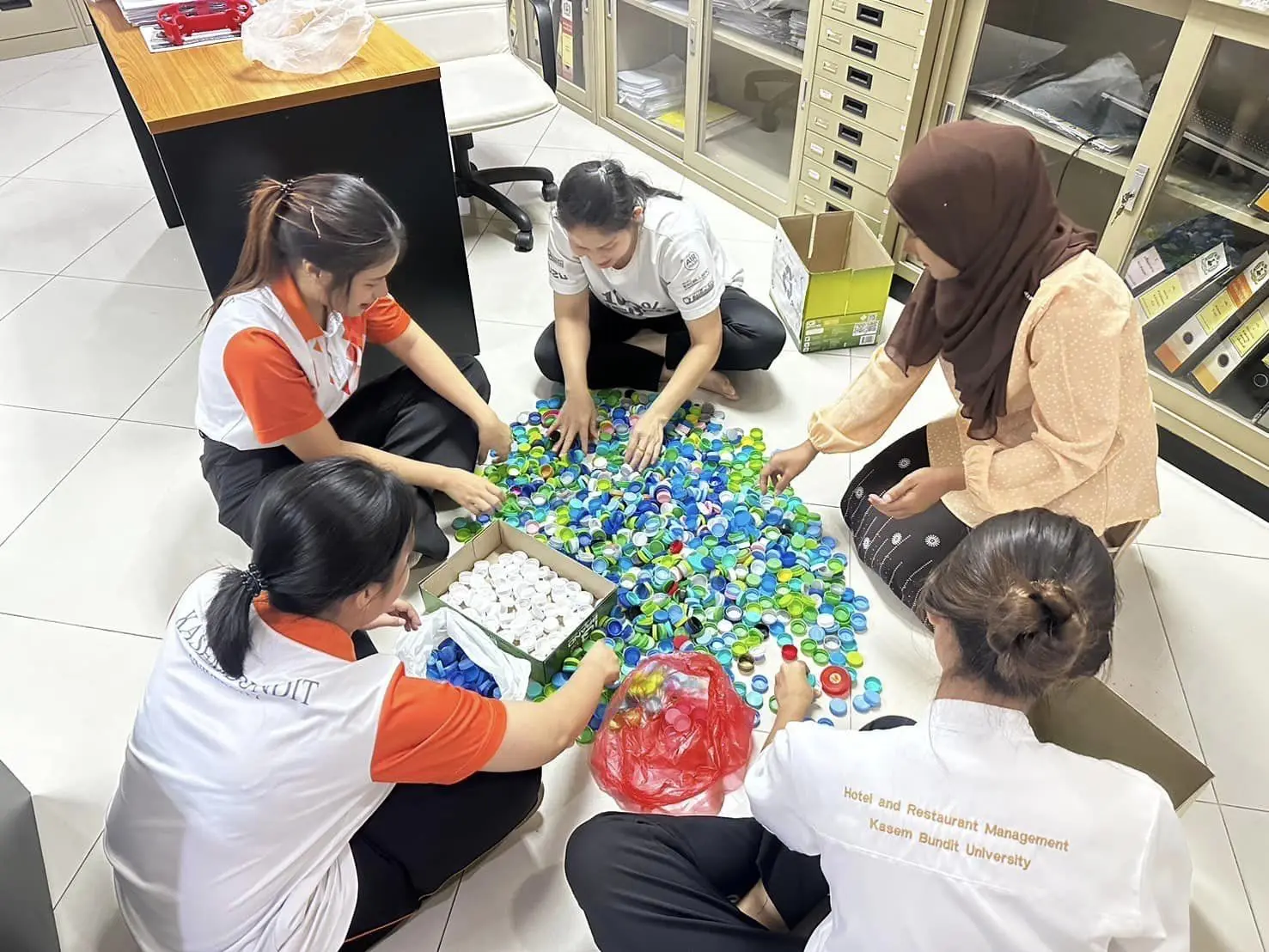 นักศึกษาและอาจารย์ จากคณะศิลปศาสตร์ และคณะนิเทศศาสตร์ ขอร่วมอาสา ลงพื้นที่ ชุมชนบึงบัว ตามโครงการออมสินยุวพัฒน์รักษ์ถิ่น 67 โดยนำฝาขวดน้ำดื่มไปมอบให้กับโฮมสเตย์บ้านป้าอยู่ภายใต้โครงการทำขยะให้มีมูลค่าร่วมกับศิลปศาสตร์ ขณะเดียวกันกลุ่มบ้านป้าอยู่ได้ออกแบบสินค้าด้านการท่องเที่ยว พร้อม กิจกรรมการท่องเที่ยวที่ใส่ใจคนในชุมชน และจัดทำของที่ระลึกแบบ Work Shop อาทิ การร้อยพวงมาลัยที่เกิดจากฝาขวดพลาสติกจากฝีมือนักท่องเที่ยว หรือจะซื้อพวงมาลัยเป็นของที่ระลึกไปมอบให้ผู้ใหญ่ ที่จัดทำโดย กลุ่มผู้สูงอายุชุมชนบึงบัว อีกด้วย