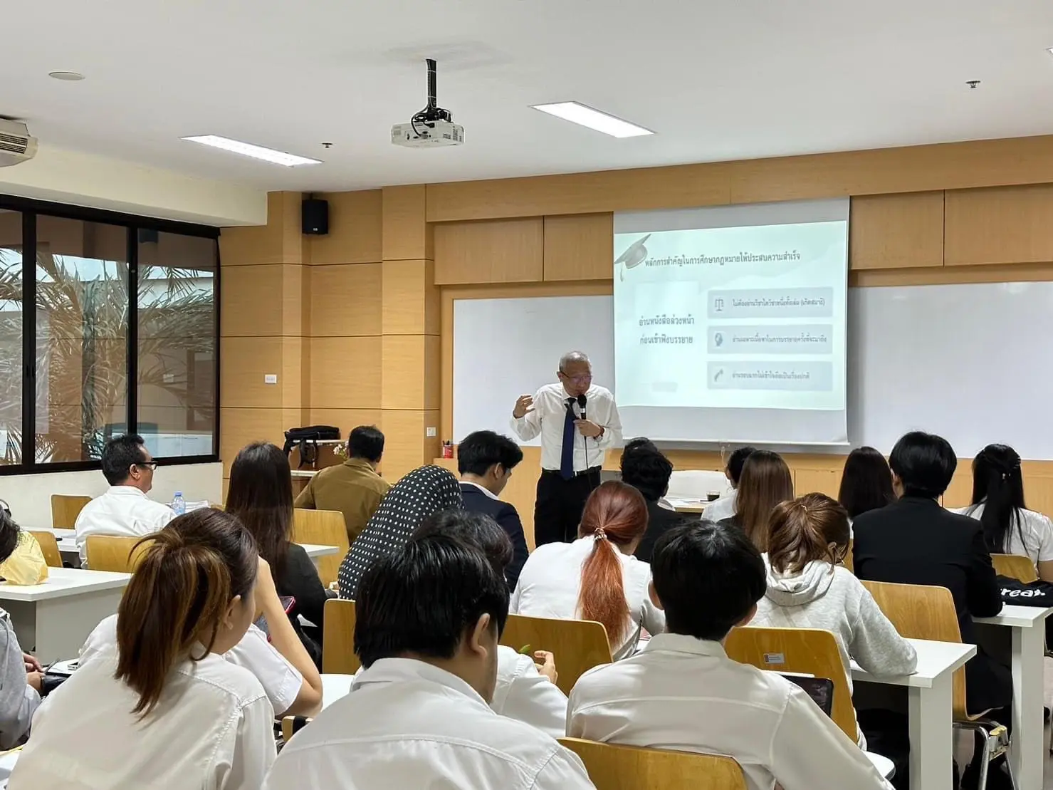 การศึกษากฎหมาย เป็นศาสตร์และศิลป์ที่ไม่มีสูตรสำเร็จ” กิจกรรม “เทคนิคการเขียนตอบข้อสอบกฎหมาย” ร่วมถ่ายทอดประสบการณ์ดี ๆ โดย อาจารย์ธีรศักดิ์ เงยวิจิตร ผู้พิพากษาศาลอุทธรณ์ คดีชำนัญพิเศษ เมื่อวันที่ 7 ธันวาคม 2566 ณ มหาวิทยาลัยเกษมบัณฑิต วิทยาเขตร่มเกล้า