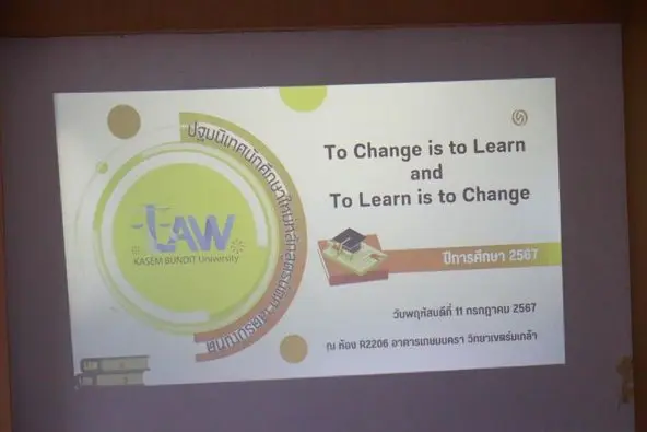 โครงการปฐมนิเทศนักศึกษาใหม่ประจำปีการศึกษา 2567 หลักสูตรนิติศาสตรบัณฑิต คณะนิติศาสตร์ ภายใต้หัวข้อ “To Change is to Learn and to Learn is to Change”