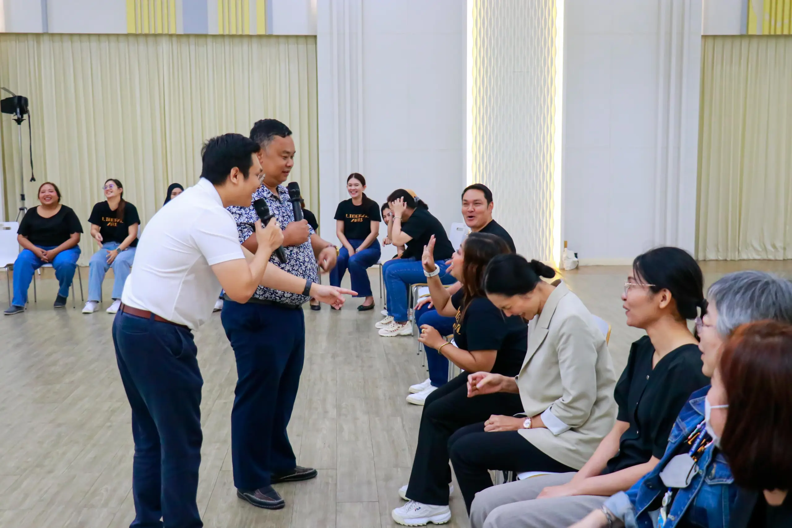 คณะศิลปศาสตร์ จัดโครงการพัฒนาบุคลากร ภายใต้ชื่อ “Team Synergy: พลังแห่งการทำงานร่วมกันผ่านการสื่อสารที่มีประสิทธิภาพ”  โดยได้รับเกียรติจาก าจารย์ชินณภัคย์ ศิริสวัสดิ์ อาจารย์ประจำสาขาวิชาพลศึกษาและนันทนาการ มหาวิทยาลัยเทคโนโลยีราชมงคลธัญบุรี เป็นวิทยากร มาถ่ายทอดความรู้และเทคนิคการสื่อสารเพื่อสร้างทีมเวิร์กอย่างมีประสิทธิภาพ ผ่านกิจกรรมเชิงปฏิบัติการที่สนุกสนานและได้สาระ  ทั้งนี้เพื่อส่งเสริมให้บุคลากรภายในคณะได้พัฒนาทักษะการสื่อสาร การทำงานร่วมกัน และสร้างบรรยากาศการทำงานที่มีความสุข พร้อมทั้งเสริมพลังทีมให้แข็งแกร่ง เพื่อขับเคลื่อนการทำงานของคณะให้มีประสิทธิภาพและเต็มไปด้วยพลังบวก