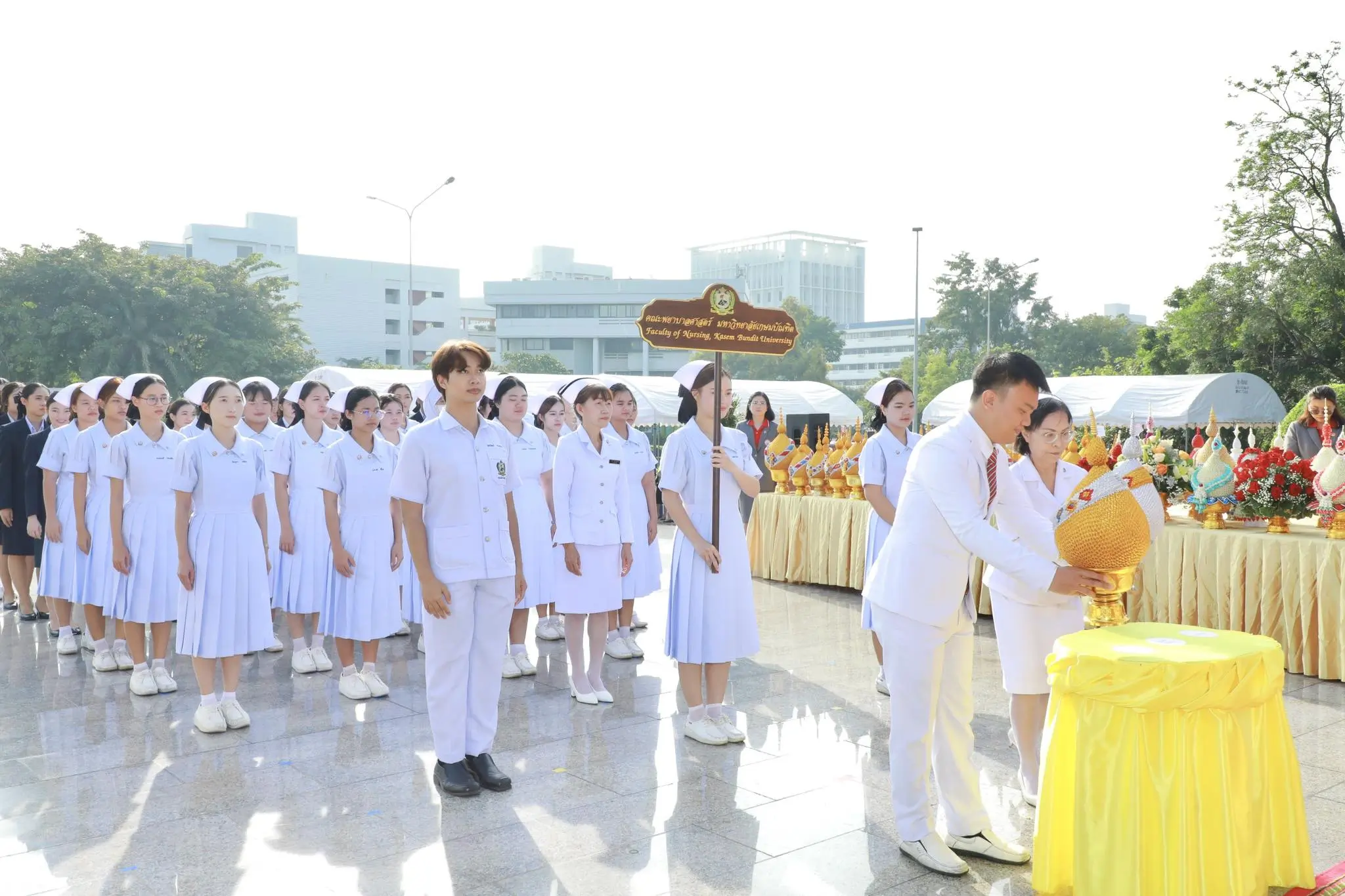 วันที่ 21 ตุลาคม 2568 คณะพยาบาลศาสตร์ โดยผู้ช่วยศาสตราจารย์ธนะวัฒน์ รวมสุก ผู้ช่วยคณบดีฝ่ายกิจการนักศึกษา อาจารย์กรพินธุ์ ฤทธิบุตร หัวหน้างานทำนุบำรุงศิลปวั