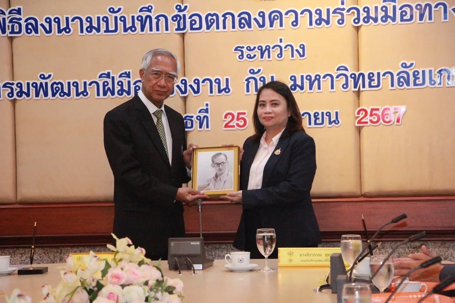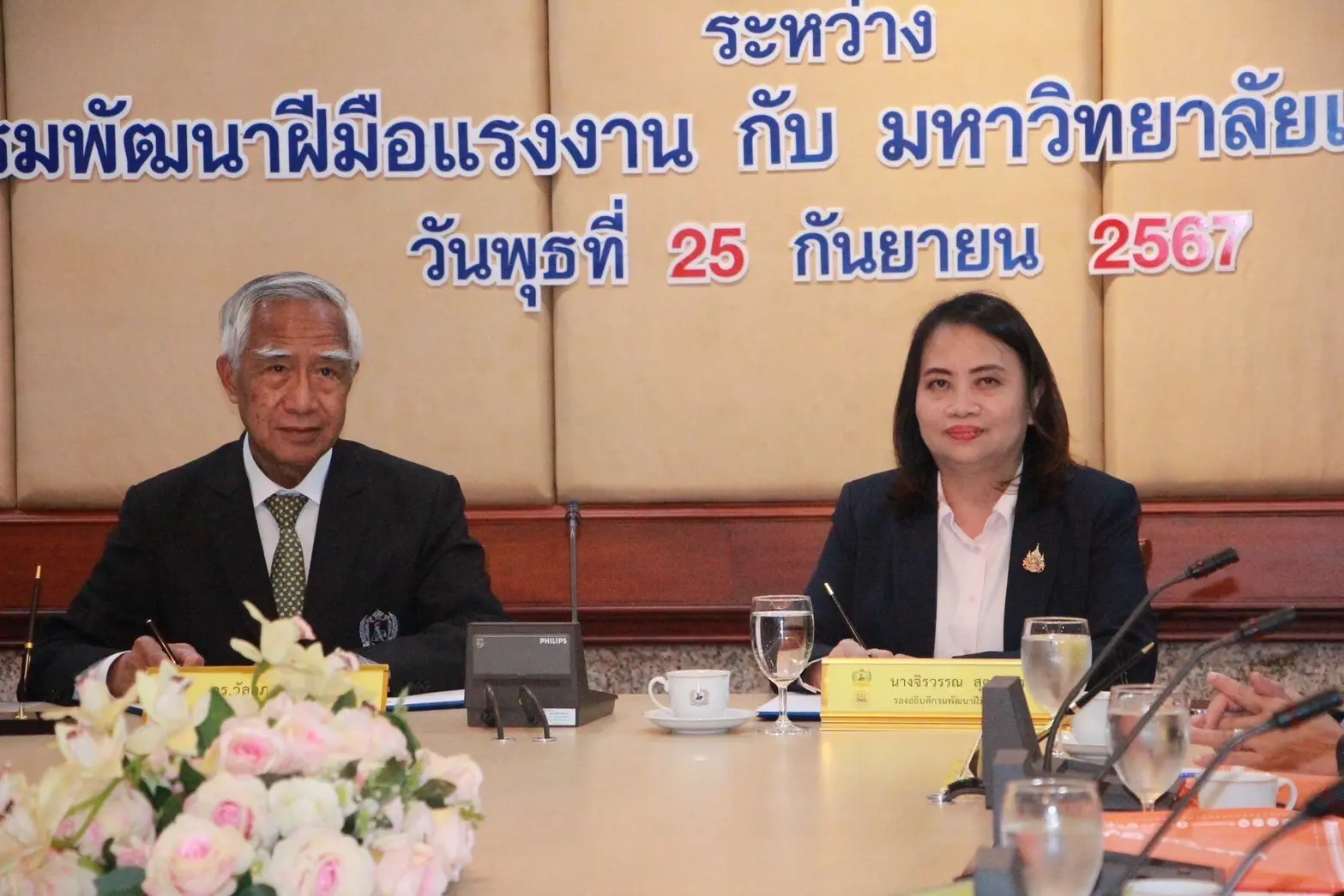 มหาวิทยาลัยเกษมบัณฑิต ร่วมลงนามบันทึกข้อตกลงความร่วมมือทางวิชาการด้านการพัฒนาฝีมือแรงงาน (MOU) กับ กรมพัฒนาฝีมือแรงงาน ส่งเสริมความเข้มแข็งภาคแรงงานเน้นการฝึกทักษะ ทั้ง Upskill และReskill พร้อมเสริมด้วยการจัดทีมนักวิจัย ต่อยอดการความต้องการของผู้ใช้แรงงาน โดยมี นางจิรวรรณ สุตสุนทร รองอธิบดีกรมพัฒนาฝีมือแรงงาน และ ดร.วัลลภ สุวรรณดี อธิการบดีมหาวิทยาลัยเกษมบัณฑิต เป็นผู้ลงนาม โดยมีผู้บริหารจาก 2 องค์กรร่วมเป็นเกียรติในพิธีลงนาม ณ ห้องประชุมผู้บริหารระดับสูง ชั้น 3 อาคารเฉลิมพระเกียรติ มหาวิทยาลัยเกษมบัณฑิต วิทยาเขตพัฒนาการ เมื่อวันที่ 25 กันยายน ที่ผ่านมา