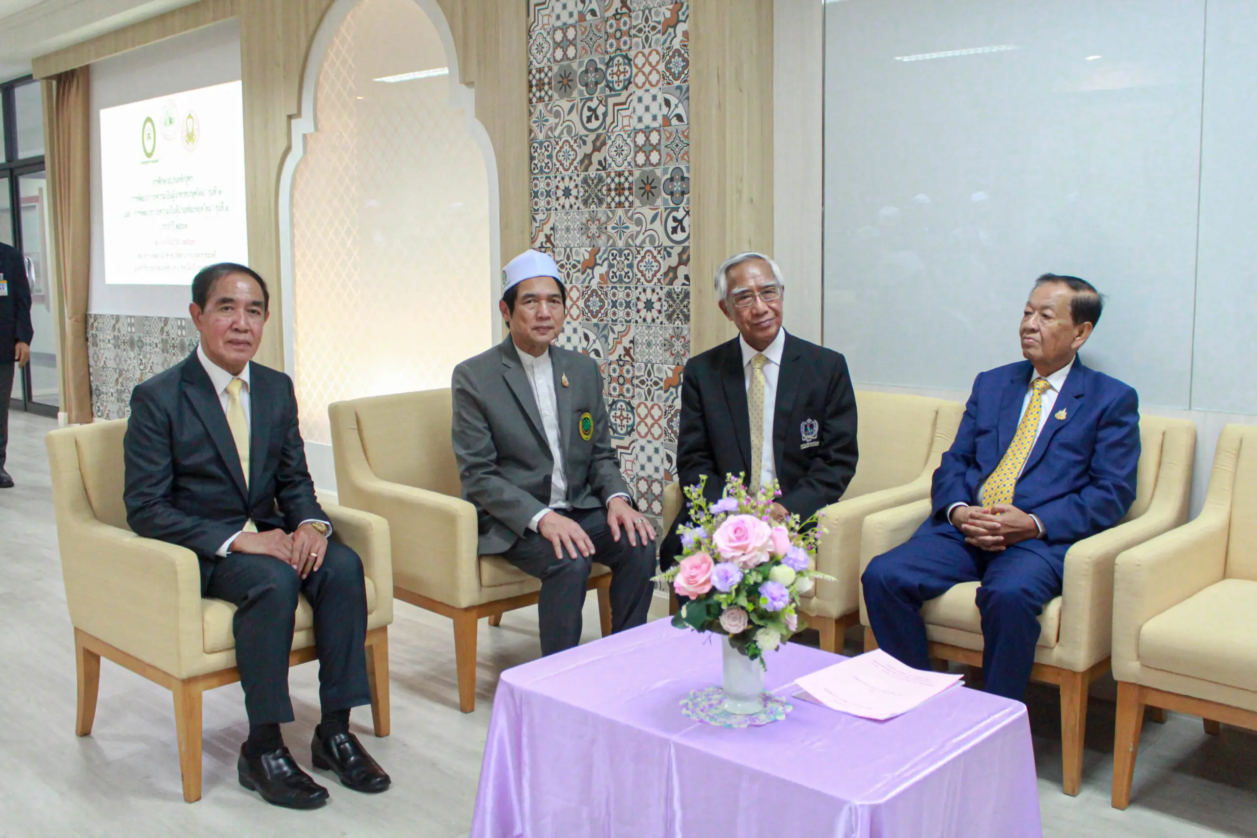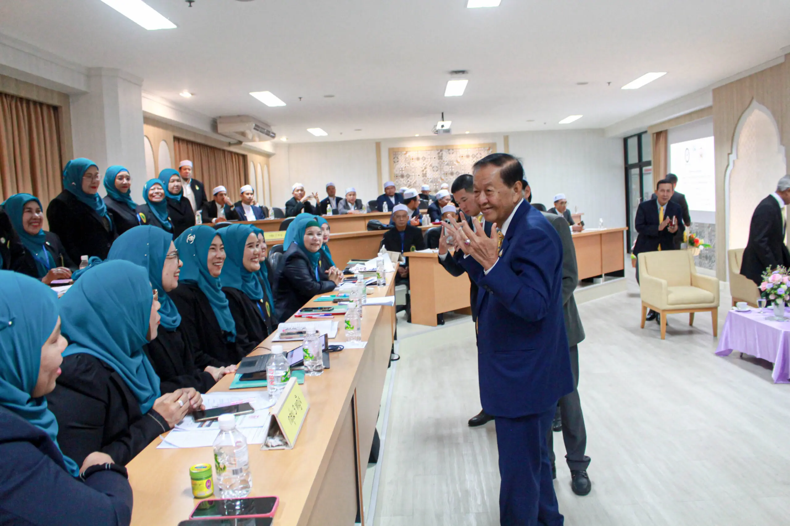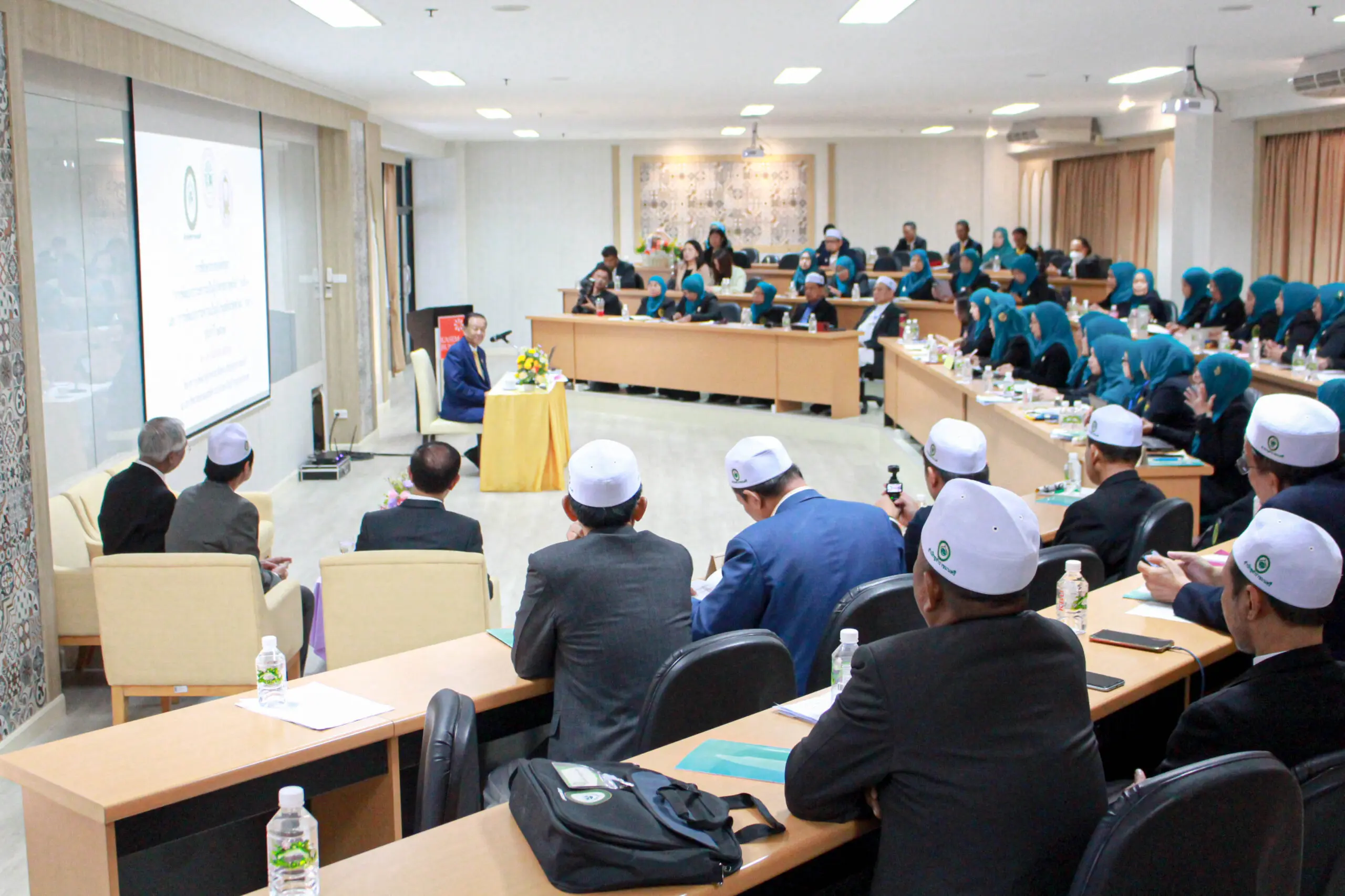มหาวิทยาลัยเกษมบัณฑิต ได้รับเกียรติจากสำนักจุฬาราชมนตรี ให้ดำเนินการจัดกิจกรรมบรรยายพิเศษ ตามโครงการ อบรมหลักสูตร “การพัฒนาภาวะความเป็นผู้นำศาสนายุคใหม่” รุ่นที่ 7 และหลักสูตร “การพัฒนาภาวะความเป็นผู้นำผู้นำมุสลิมะห์ยุคไหม่” รุ่นที่ 4 หลักสูตรที่ 2 โอกาสนี้ ดร.วัลลภ สุวรรณดี อธิการบดี พร้อมด้วยคณะผู้บริหาร ให้การต้อนรับ นายวันมูหะมัดนอร์ มะทา ประธานรัฐสภาไทยและประธานสภาผู้แทนราษฎร ให้เกียรติบรรยายพิเศษหัวข้อ “หัวใจของการพัฒนาประชาธิปไตย” ผ่านแนวคิดและประสบการณ์ด้านการทำงานฝ่ายนิติบัญญัติ ดำเนินกิจการของรัฐสภา และรักษาความสงบเรียบร้อยในที่ประชุมรัฐสภาไทย จัดขึ้นระหว่างวันที่ 2 – 9 กันยายน 2567 ณ ห้อง R2516 ชั้น 5 อาคารเกษมนครา วิทยาเขตร่มเกล้า