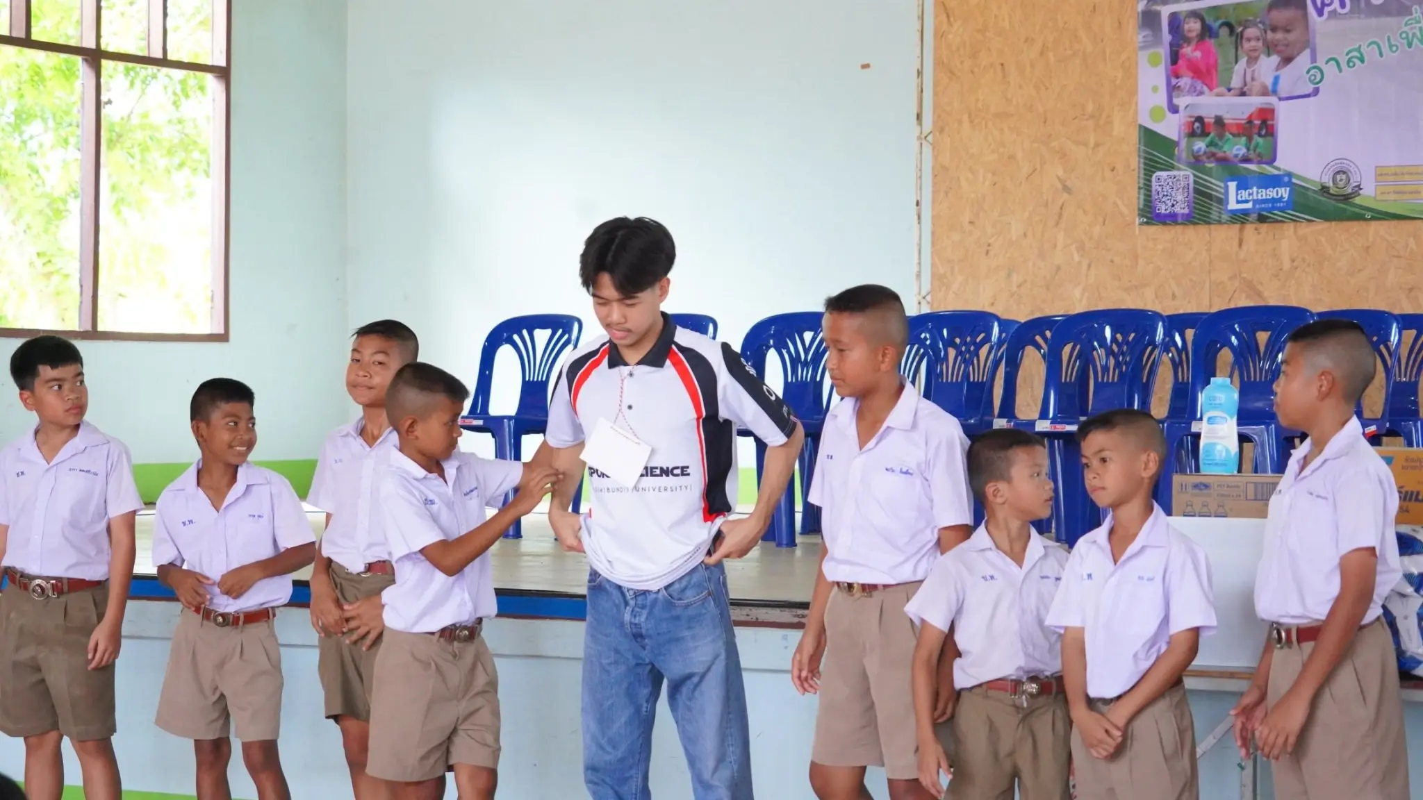 คณะวิทยาศาสตร์การกีฬา จัดโครงการ “ค่ายวิทย์กีฬาอาสาเพื่อพัฒนาโรงเรียน ครั้งที่ 4” ณ โรงเรียนวัดคลองชากพง อำเภอแกลง จังหวัดระยอง สร้างพื้นที่แห่งการเรียนรู้ ควบคู่การแบ่งปัน เพื่อพัฒนาเยาวชนผ่านกิจกรรมวิชาการและกีฬาอย่างรอบด้าน เป็นเวลา 5 วัน บรรยากาศเต็มไปด้วยพลังแห่งการ “ให้” และ “การเรียนรู้” โดยทีมคณาจารย์ นักศึกษา และอาสาสมัคร ได้ร่วมกันออกแบบกิจกรรมที่หลากหลาย ทั้งด้านวิชาการและการเสริมสร้างทักษะชีวิต อาทิ กิจกรรมเสริมความรู้ด้านโภชนาการ และสมรรถภาพทางกาย การฝึกทักษะกีฬา อาทิ ฟุตบอล วอลเลย์บอล แชร์บอล กรีฑา รวมถึงกีฬาพื้นบ้านและกีฬาฮาเฮ และกิจกรรมนันทนาการที่สร้างรอยยิ้มและความสัมพันธ์ที่ดี พร้อมมอบอุปกรณ์กีฬาและสิ่งสนับสนุนให้กับโรงเรียน และกิจกรรม “กีฬาสีสานสัมพันธ์ ชากพงเกมส์” ภายใต้ธีม อนุรักษ์ท้องทะเล ที่เปิดโอกาสให้นักเรียนได้แสดงศักยภาพ พร้อมปลูกฝังความสามัคคี และจิตสำนึกด้านสิ่งแวดล้อมด้วย