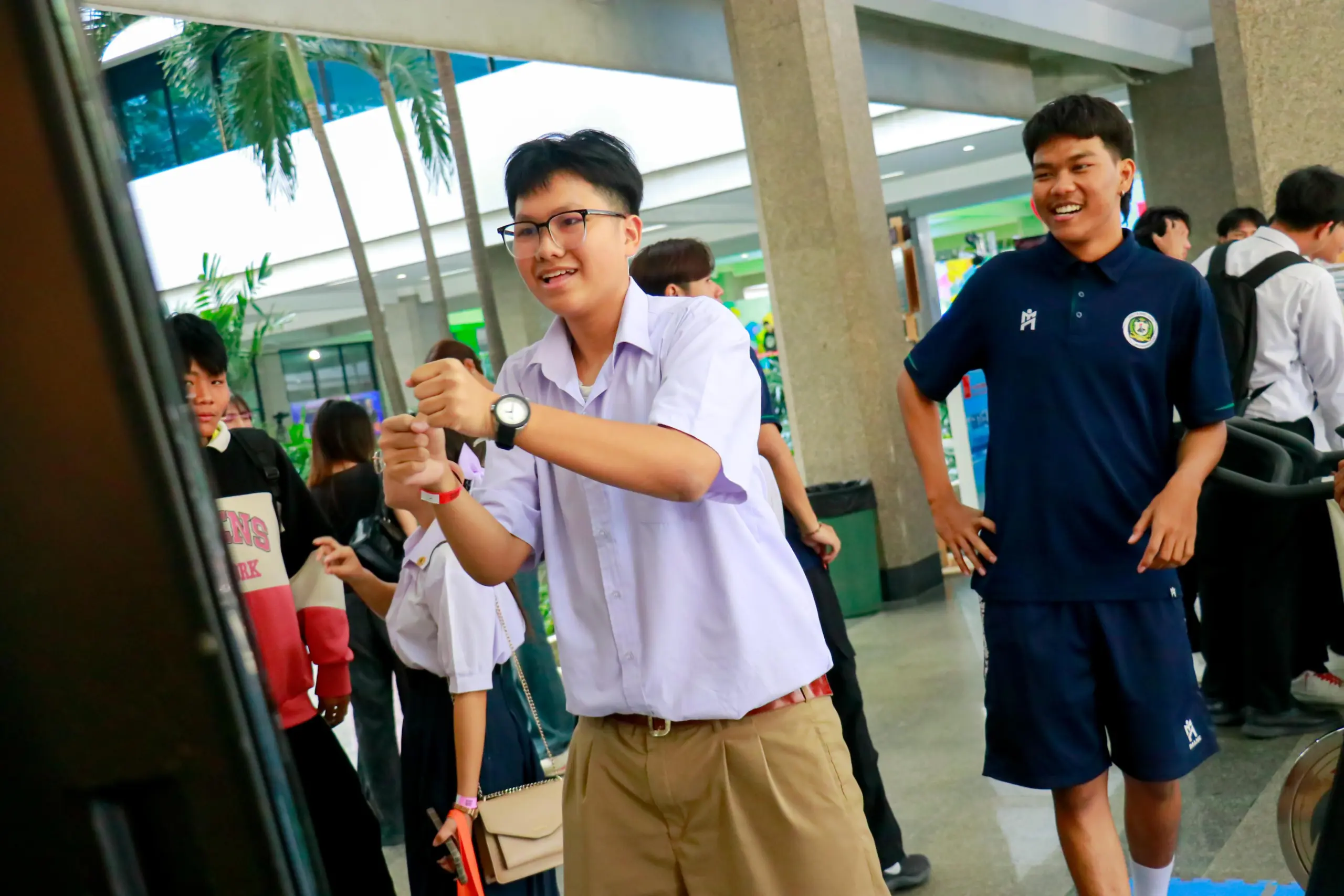 • นางสาวเพชรลดา สุขวัฒนะนักเรียนชั้น ม.6 โรงเรียนเทศบาล 1 (เยี่ยมเกษสุวรรณ) จ.สมุทรปราการ เล่าว่า “ตั้งใจมาคนเดียวเพราะอยากสำรวจคณะวิศวกรรมศาสตร์และคณะบริหารธุรกิจ กำลังตัดสินใจว่าจะเลือกคณะไหน พอได้ลองทำจริง ได้ฟังคำอธิบายจากพี่ๆ ก็ช่วยให้เข้าใจมากขึ้นและเห็นแนวทางของตัวเองชัดเจนขึ้นค่ะ”