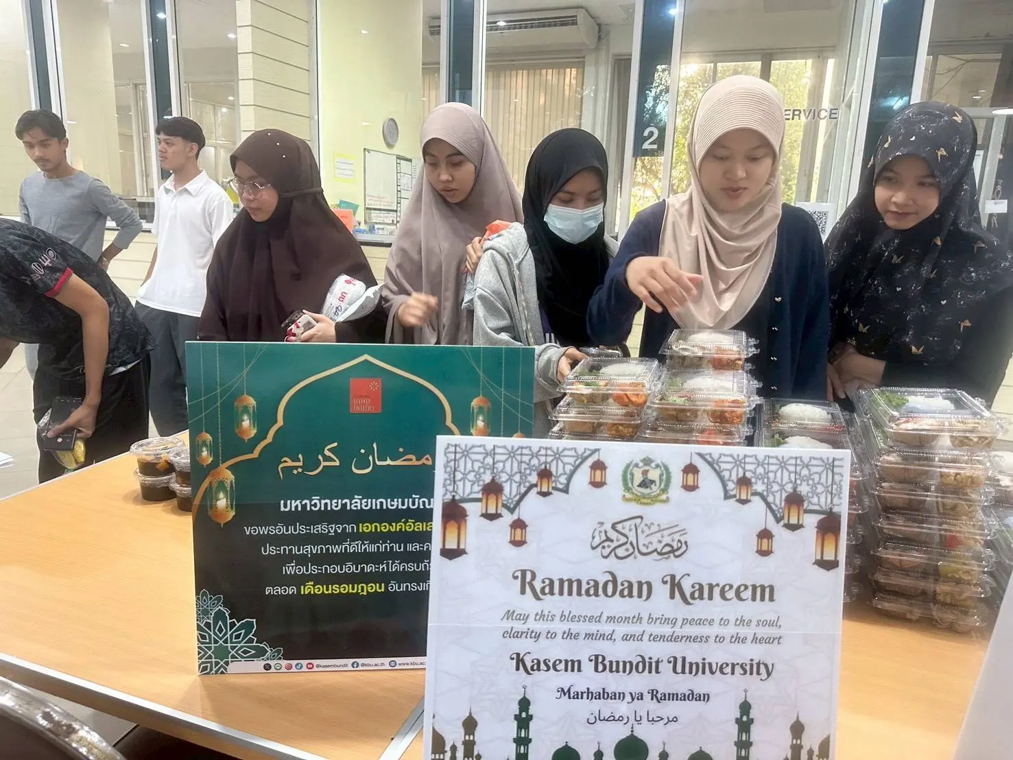 มหาวิทยาลัยเกษมบัณฑิต จัดกิจกรรมเลี้ยงอาหารละศีลอด (Iftar) สนับสนุนการปฏิบัติศาสนกิจของนักศึกษาและบุคลากรมุสลิม เนื่องในเดือนรอมฎอน เดือนอันประเสริฐของพี่น้องชาวมุสลิม โดยบรรยากาศเป็นไปอย่างอบอุ่น เปี่ยมด้วยรอยยิ้มและความเอื้ออาทร ภายในรั้วมหาวิทยาลัย