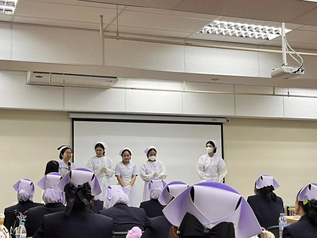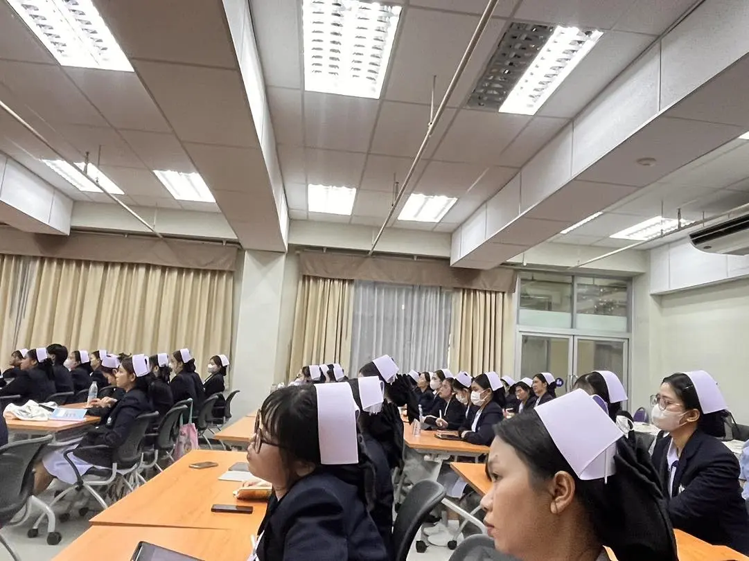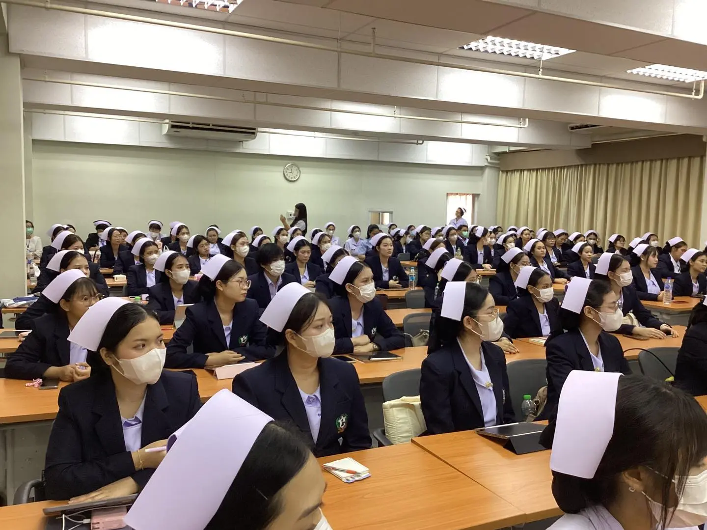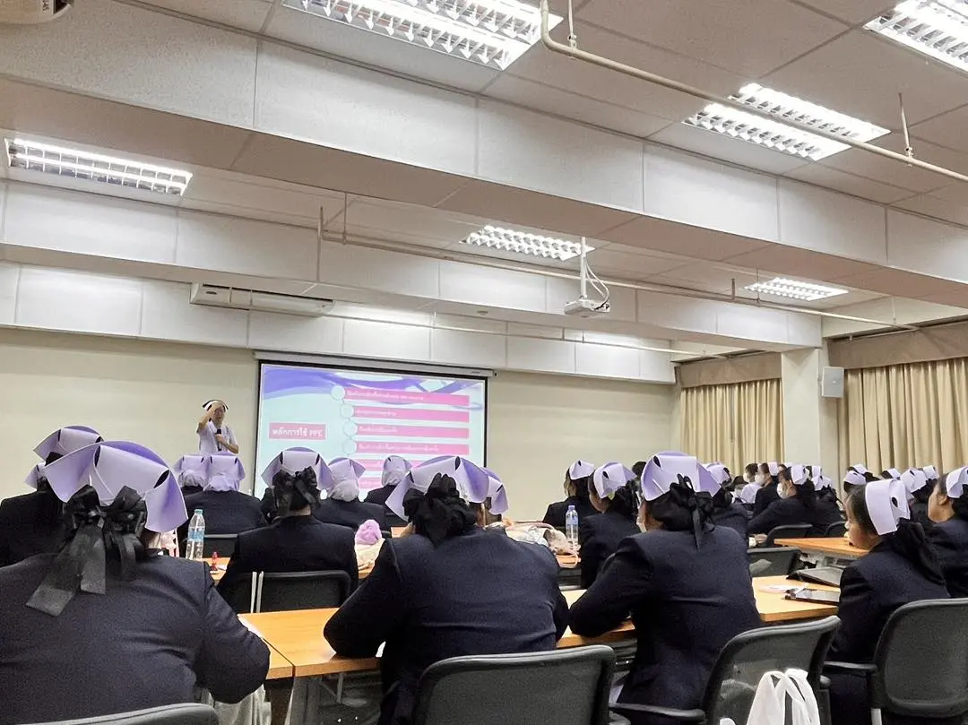 นักศึกษาชั้นปีที่ 2 คณะพยาบาลศาสตร์ มหาวิทยาลัยเกษมบัณฑิต เข้าร่วมการปฐมนิเทศเตรียมความพร้อมก่อนออกฝึกปฏิบัติงานในรายวิชา “พื้นฐานการพยาบาล” (Fundamental of Nursing) ณ โรงพยาบาลสิรินธร เพื่อเสริมสร้างความรู้และทักษะที่จำเป็นก่อนการฝึกปฏิบัติจริงในสถานพยาบาล เพื่อเน้นย้ำมาตรฐานการป้องกันการแพร่กระจายเชื้อในสถานพยาบาล (Infection Control) พร้อมฝึกปฏิบัติการสวมใส่อุปกรณ์ป้องกันส่วนบุคคล (PPE) อย่างถูกต้องและปลอดภัย เพื่อป้องกันความเสี่ยงทั้งต่อผู้ป่วยและผู้ปฏิบัติงาน นับเป็นกิจกรรมสำคัญ สำหรับการเตรียมความพร้อมให้แก่นักศึกษา ก่อนก้าวสู่ประสบการณ์จริงในวิชาชีพ สร้างพื้นฐานการดูแลผู้ป่วยอย่างมีมาตรฐาน และพัฒนาศักยภาพสู่การเป็น พยาบาลวิชาชีพที่มีคุณภาพในอนาคต