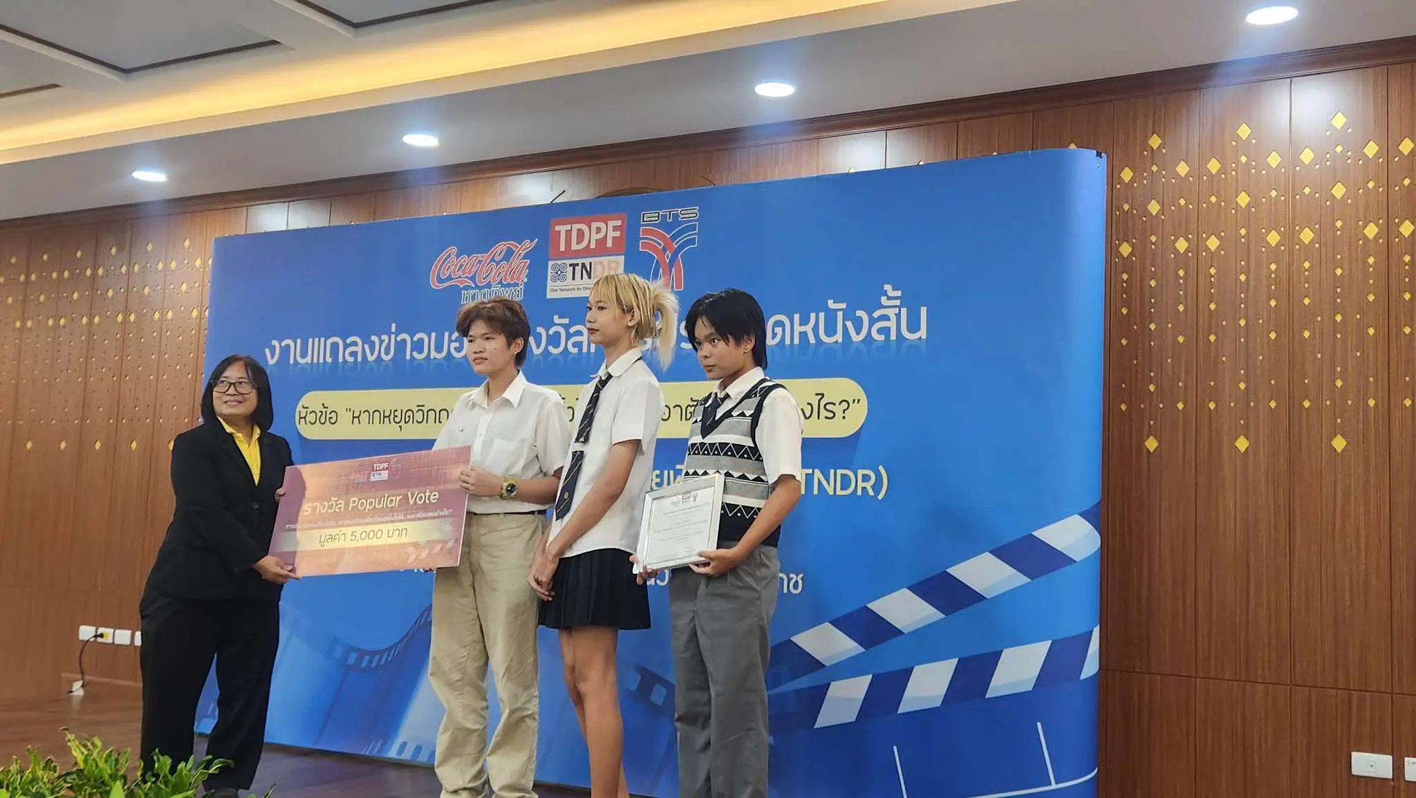 ขอแสดงความยินดีกับ 2 นักศึกษาชั้นปีที่ 1 สาขาวิชาสื่อสารการแสดงร่วมสมัย คณะนิเทศศาสตร์ ได้รับรางวัล Popular Vote จากการประกวดภาพยนตร์สั้นเครือข่ายพัฒนาความเข้มแข็งต่อภัยพิบัติไทย (Thai Network for Disaster Resilience : TNDR) จัดประกวดภาพยนตร์สั้น หัวข้อ “หากหยุดวิกฤตโลกร้อนสุดขั้วไม่ได้…จะเอาตัวรอดอย่างไร”