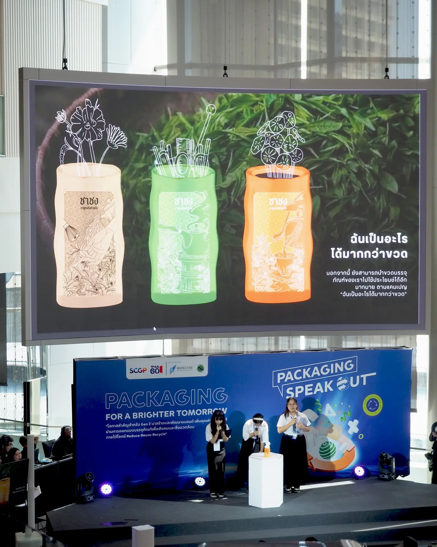 ผลงานนักศึกษา นำเสนอไอเดีย ชาชง “ขวดชาที่ซื้อ 1 ได้ถึง 2” บรรจุภัณฑ์ที่คำนึงถึงการลดขยะจากพลาสติกที่ส่งผลกระทบต่อสิ่งแวดล้อม และเน้นการตอบสนองต่อความสะดวกสบายของผู้บริโภค ซึ่งการส่งผลงานเข้าประกวดเป็นการคัดเลือกจากนักศึกษาทั่วประเทศ ณ สยามพารากอน