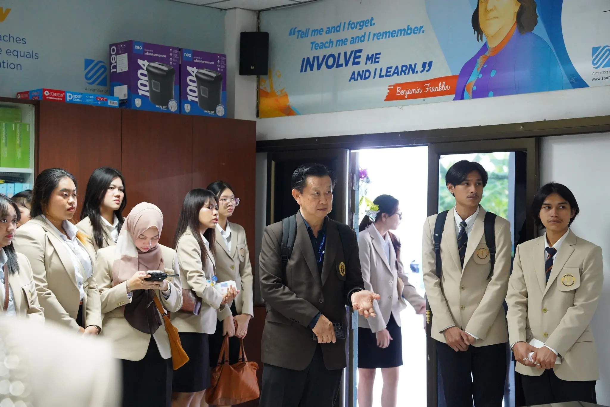ผศ.ดร.ประภาส ณ พิกุล เเละ อ.ดร.กอบบุญ พึ่งประดิษฐ์ นำนักศึกษาคณะจิตวิทยา ชั้นปีที่ 3 เข้าศึกษาดูงาน โรงเรียนเตรียมอุดมศึกษาน้อมเกล้า