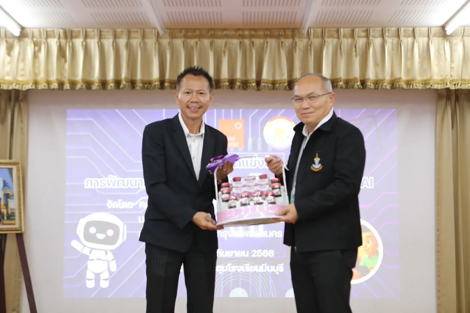 วันพฤหัสบดีที่ 18 กันยายน 2568 คณะทำงานด้านการศึกษาและเทคโนโลยี คคพ. มีนบุรี ร่วมกับมหาวิทยาลัยเกษมบัณฑิตและสำนักงานเขตมีนบุรี จัดการแข่งขัน “โครงการพัฒนาพัฒนาครูด้วย AI” ให้กับโรงเรียนในสังกัดสำนักงานเขตมีนบุรี จำนวน 13 แห่ง โดยมีผู้เข้าร่วมเสนอผลงานแข่งขัน 21 ท่าน แข่งขัน 5 รางวัล ได้แก่รางวัลชนะเลิศ รองชนะเลิศอันดับที่ 1 รองชนะเลิศอันดับที่ 2 และรางวัลชมเชย 2 รางวัล ในการนี้มีผู้อำนวยการเขตมีนบุรี เป็นประธานในการแข่งขันและมอบรางวัล ( เงินรางวัลได้รับการสนับสนุนจากผู้อำนวยการเขตมีนบุรี )