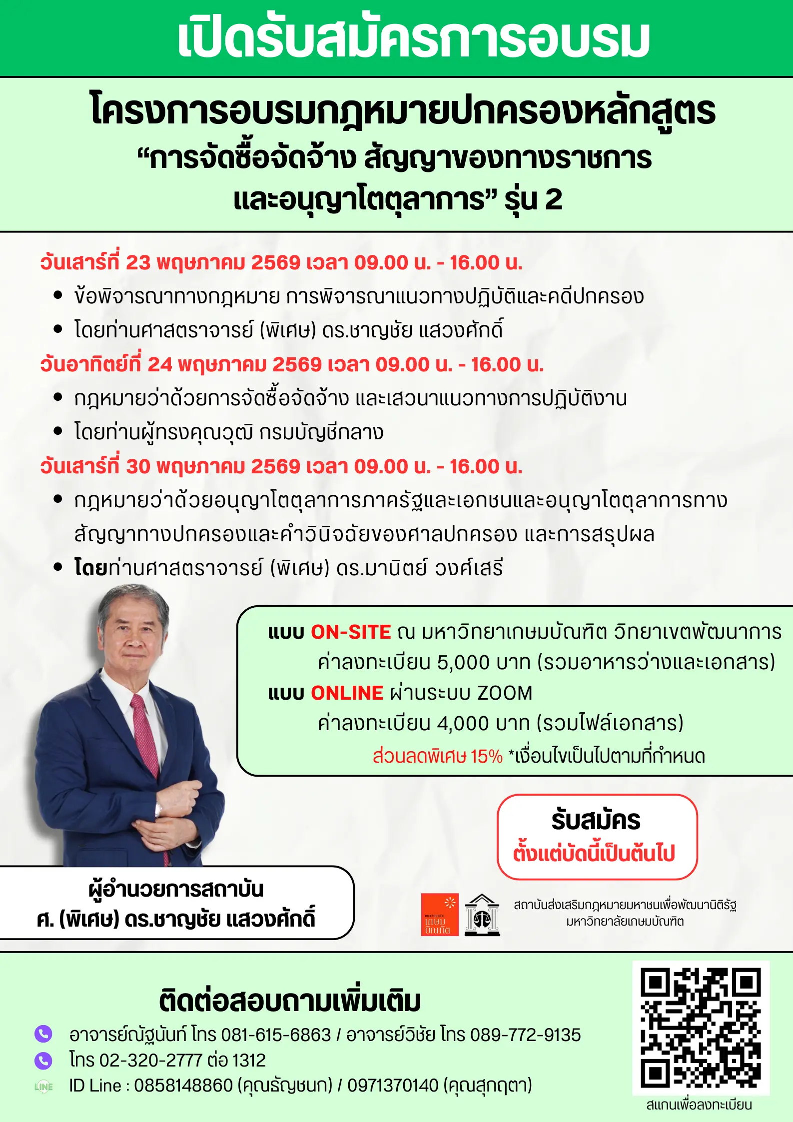 “การจัดซื้อจัดจ้าง สัญญาของทางราชการ และอนุญาโตตุลาการ” รุ่น 2