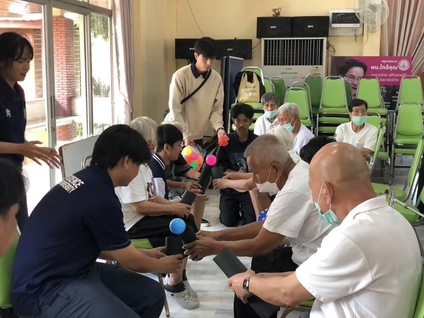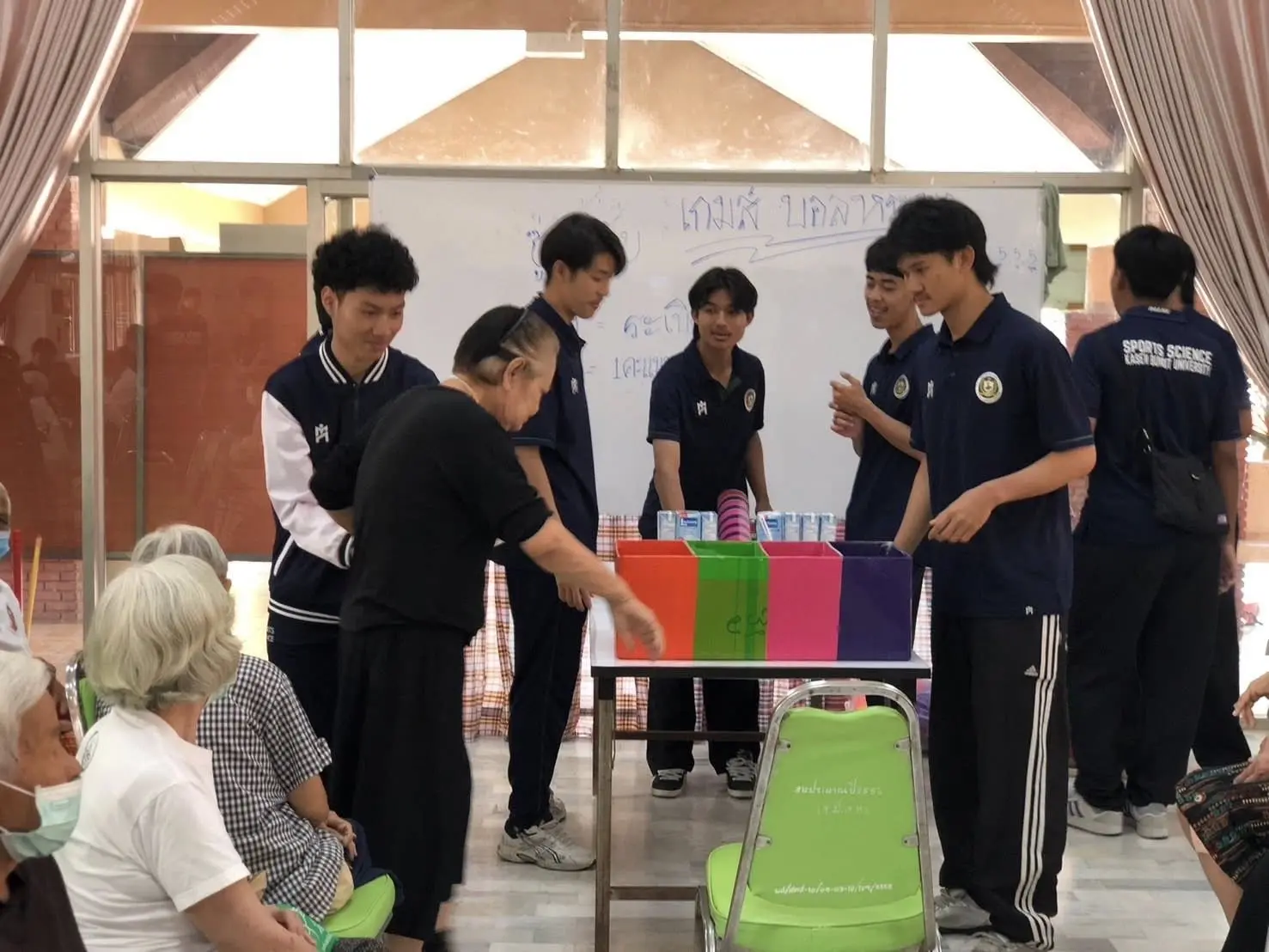 พลังความตั้งใจของนักศึกษาชั้นปีที่ 3 สาขาการจัดการกีฬาและนันทนาการ คณะวิทยาศาสตร์การกีฬา ได้เปลี่ยนเสียงเชียร์ในสนามให้กลายเป็นพลังแห่งการให้ ผ่านโครงการฟุตซอลการกุศล “ส่งสุขด้วยลูกหนัง” ครั้งที่ 1 โดยนำรายได้จากการแข่งขัน พร้อมผู้สมทบทุนเพิ่มเติม รวมเป็นจำนวนเงินทั้งสิ้น 22,762 บาท ส่งต่อความสุขและกำลังใจให้แก่ผู้สูงอายุ โครงการดังกล่าวได้มอบเงินและสิ่งของอำนวยความสะดวกที่จำเป็นแก่ผู้สูงอายุ ณ ศูนย์พัฒนาการจัดสวัสดิการสังคมผู้สูงอายุวาสนะเวศม์ จังหวัดพระนครศรีอยุธยา เพื่อสนับสนุนคุณภาพชีวิตและสร้างรอยยิ้มให้กับผู้รับอย่างอบอุ่น นับเป็นเวทีฝึกทักษะการบริหารจัดการด้านกีฬาอย่างมืออาชีพ แต่ยังสะท้อนหัวใจของการเป็นนักบริหารการกีฬาที่ตระหนักถึงบทบาทของตนในการสร้างคุณค่าคืนสู่สังคม